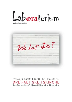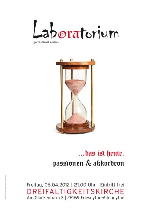 Dieser Titel wird sich Ihnen erschließen, wenn sie den neuen Laboratoriumsgottesdienst am Karfreitag, den 22.04.11 besuchen. »Etwa eine Stunde Zeit sollten Sie einplanen, wenn Sie dieses alternative, religiöse Karfreitagsangebot wahrnehmen möchten«, berichtet Martin Kröger vom Vorbereitungsteam. »Suchen Sie die etwas andere Auseinandersetzung mit der Passionsgeschichte Jesu, dann sind Sie bei uns genau richtig«, meint Gabi Tepe, »denn wir möchten auch gerade die Menschen mit unserem Angebot erreichen, die zwar religiös sind, aber mit der traditionellen Gottesdienstgestaltung eher weniger anfangen können.«